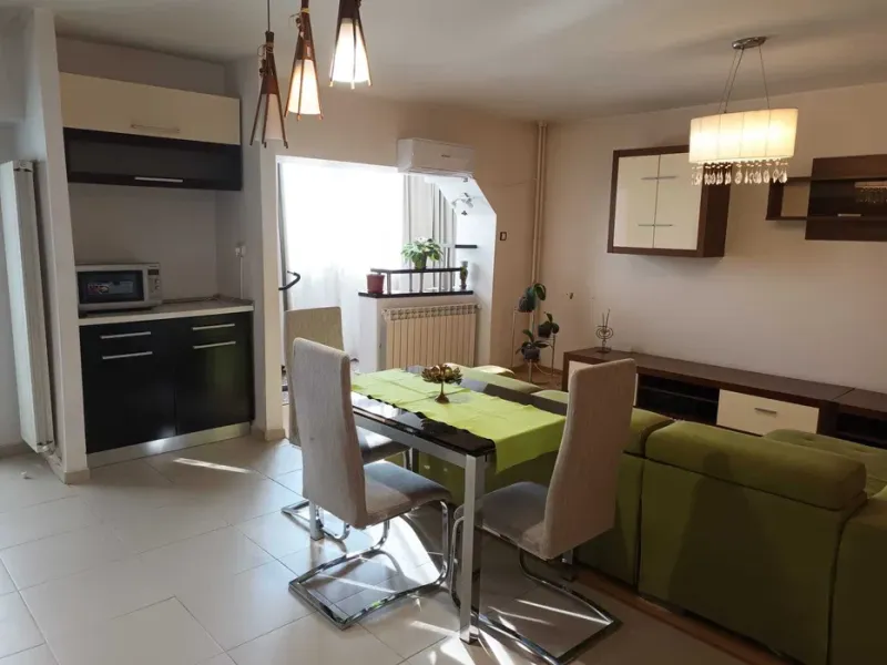 e-mobiliareDM va propune, un apartament de 3 camere decomandat, cca72mp, modern mobilat si utilat, in Iasi – Nicolina zona “piata CUG – SELGROS”. Apartamentul se afla intr-un bloc din zona amintita si este dotat cu gresie si faianta moderne in hol, baie si bucatarie open space cu livingul. Incalzire cu centrala termica proprie, instalatie aer conditionat, tamplarie interioara lemn MDF iar la exterior geamuri termopan PVC, termoizolat, cablat CATV/internet. Se inchiriaza modern amenajat, mobilat si dotat cu electrocasnice (frigider+ aragaz+ masina de spalat) ca in poze. Se afla in imediata apropiere a statiilor de mijloace de transport in comun din zona (tramvai, autobuz, maxi taxi) avand astfel facil acces catre toate zonele de interes ale orasului. La intocmire contract de inchiriere, se solicita plata chiriei in avans pe prima luna si o garantie returnabila in conditii negociate, egale cu valoarea unei luni de chirie. Pentru detalii sau alte oferte asemanatoare, va putem oferi relatii suplimentare la CALL CENTER 0745 984 394 sau pe pagina de web www.imobiliaredm.ro